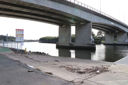 This boat ramp has a pontoon nearby, toilets, multiple parking spaces, playground, picnic and barbecue facilities.