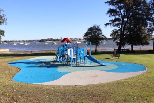 Located right on the Parramatta River foreshore, this playground has bright blue climbing play gym and softfall surface. There is also a large grass area for kids to run around, barbecues and picnic spots.