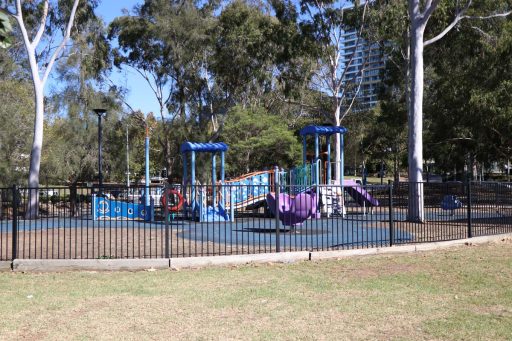 Overlooking Brays Bay this large, partially covered playground has a climbing play gym with multiple slides and sandpit. There is also a smaller, enclosed playground with boat-themed climbing play gym, rockers and spinners. Other facilities include picnic tables, barbecues, toilets, and parking.