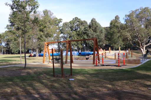 Located close to the water’s edge, this playground has swings, including a birds nest swing, and rope climbing web. There is also a large grass area, barbecue and picnic facilities, public toilets and parking.