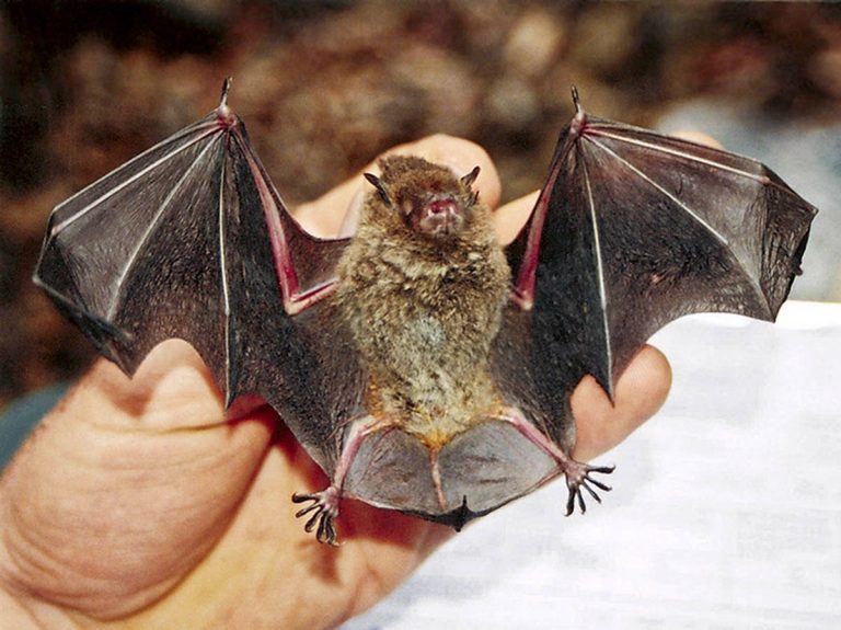 The bat’s appearance is mouse-like with small, rounded ears and dark-grey to reddish brown fur. They usually weigh up to 15 grams and have a wingspan of about 28 cm. Their feet are more than 8 mm long with widely-spaced, hairy toes and long, curved claws.