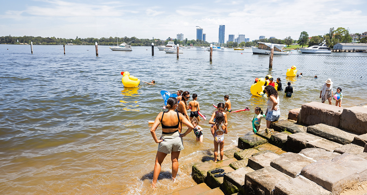 There are currently seven swimming spots on the Parramatta River, including our first success story at Lake Parramatta and the newest addition, Bedlam Bay in Gladesville. The foreshore recreation area at McIlwaine Park, featuring a beach and discovery rockpools, also highlights the diverse ways to enjoy the river and offers a glimpse of what’s planned for other sites in the future.
